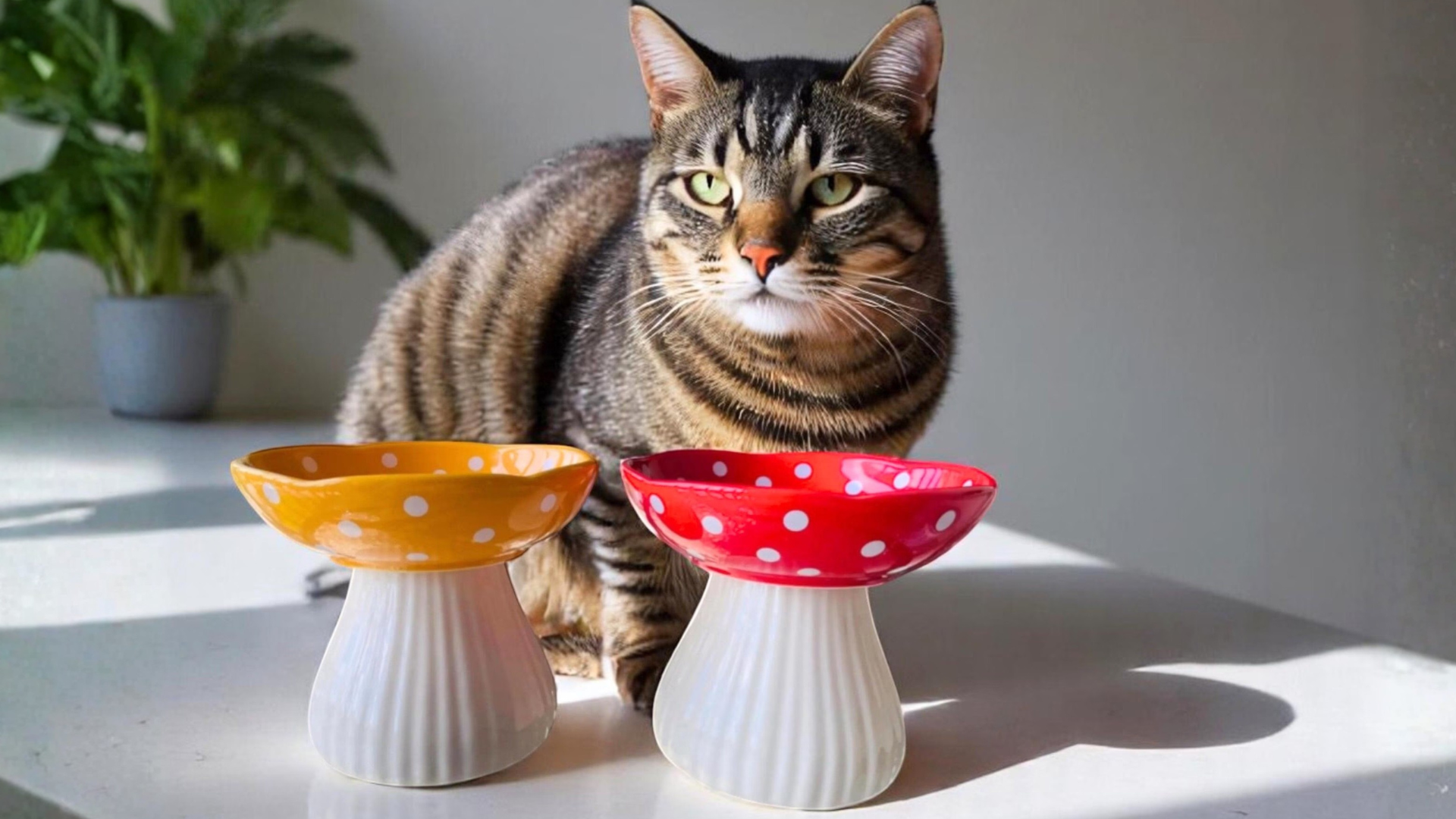 Mushroom Ceramic Slow Feeder Cat Bowl – Elevated Whisker Relief